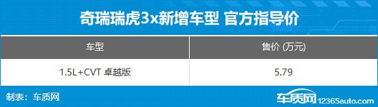 奇瑞瑞虎3x新增车型上市 售价5.79万元