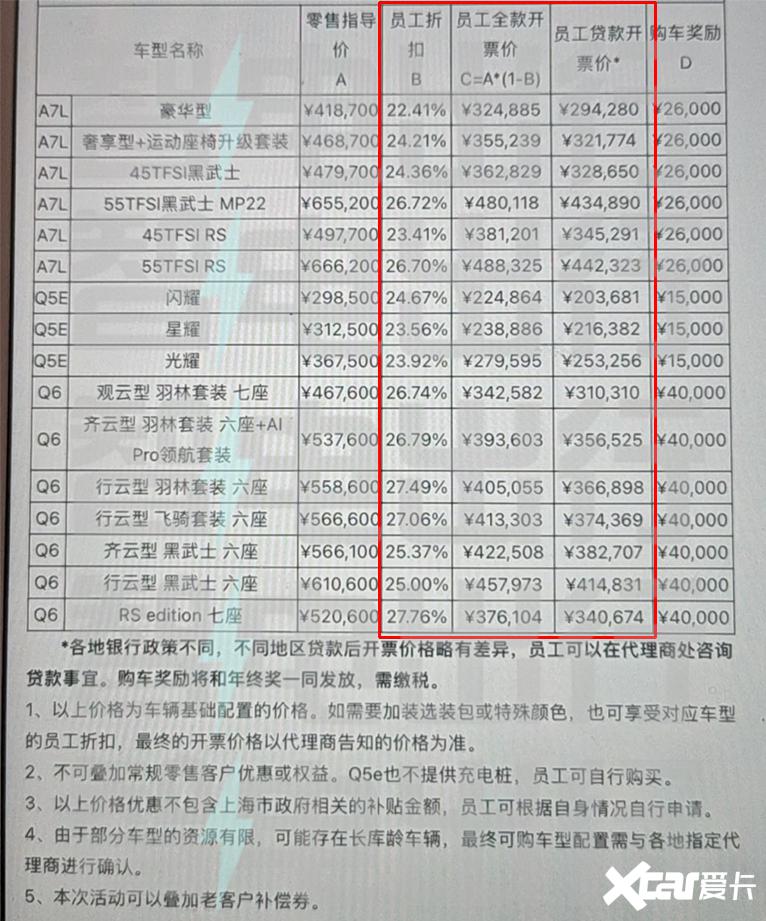 上汽奥迪员工价曝光!A7L降22万 Q5 e-tron比ID.6便宜