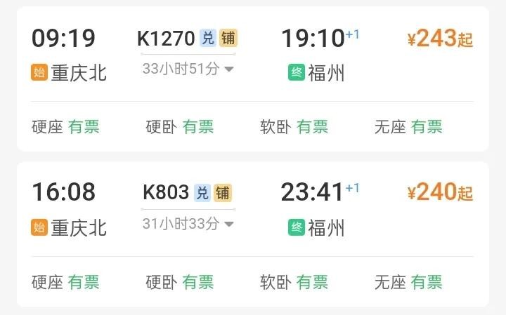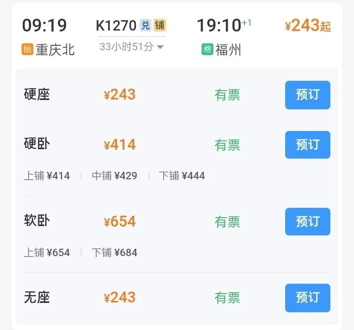 K1270重庆北到福州,重庆到福州最慢的旅客列车
