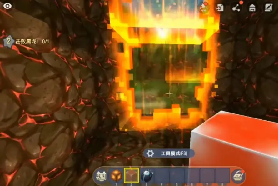 紧接着在门框里面的位置,用地心传送门块填满,这个门就会自动变成地心门。