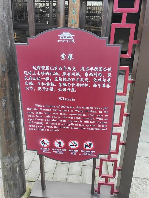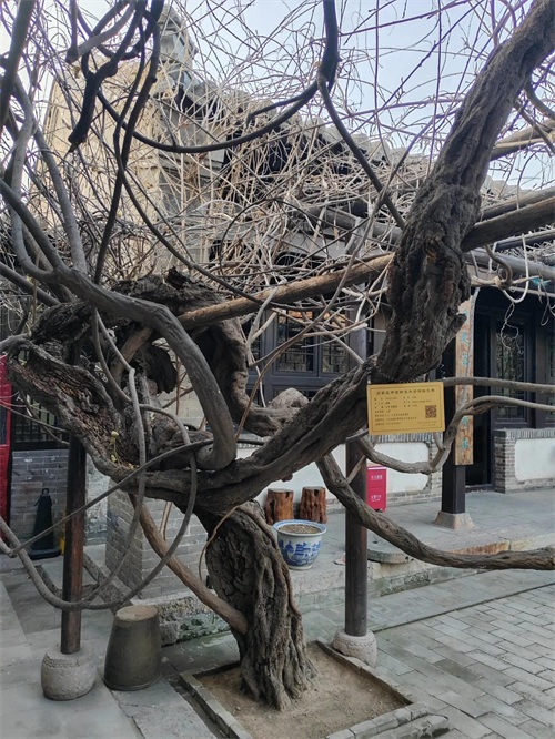 进到院内,首先看到的是一株紫薇。由于冬天,枝条光秃秃的,而旁边的介绍显示,该紫薇是德国公使赠送给王士珍的,已经一百年了!