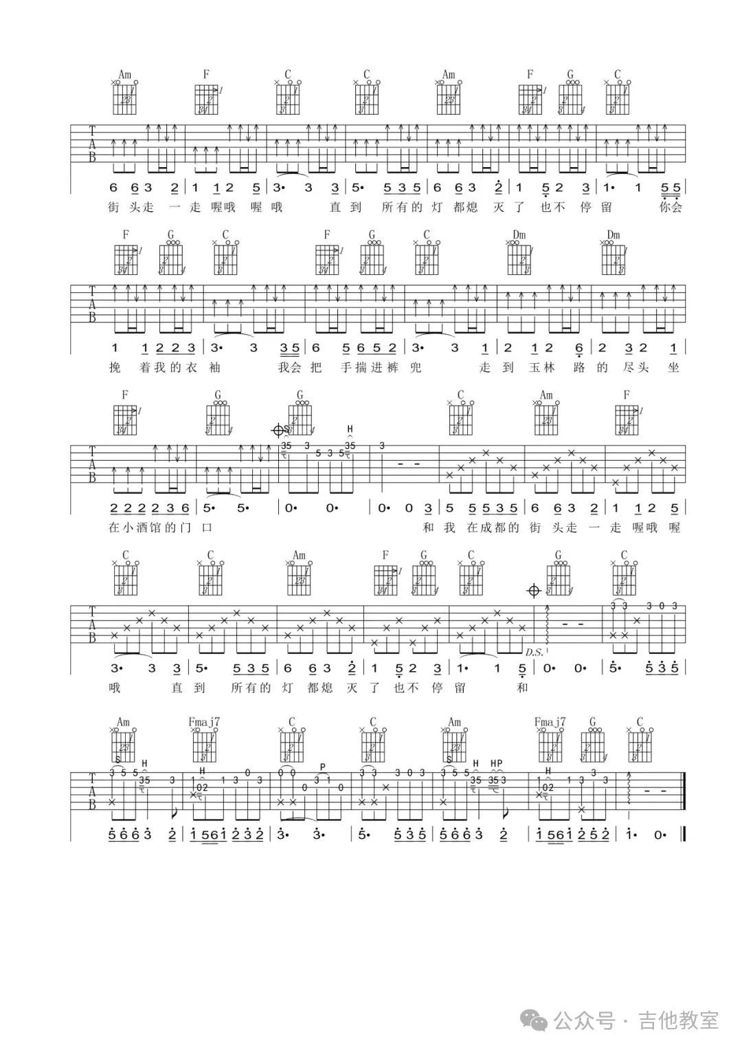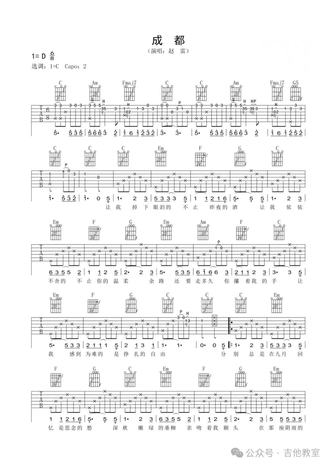 赵雷的《成都》以其民谣风格的旋律和贴近生活的歌词,迅速走红。这首歌曲的和弦简单,节奏平稳,非常适合初学者练习弹唱,同时感受音乐中的故事感。