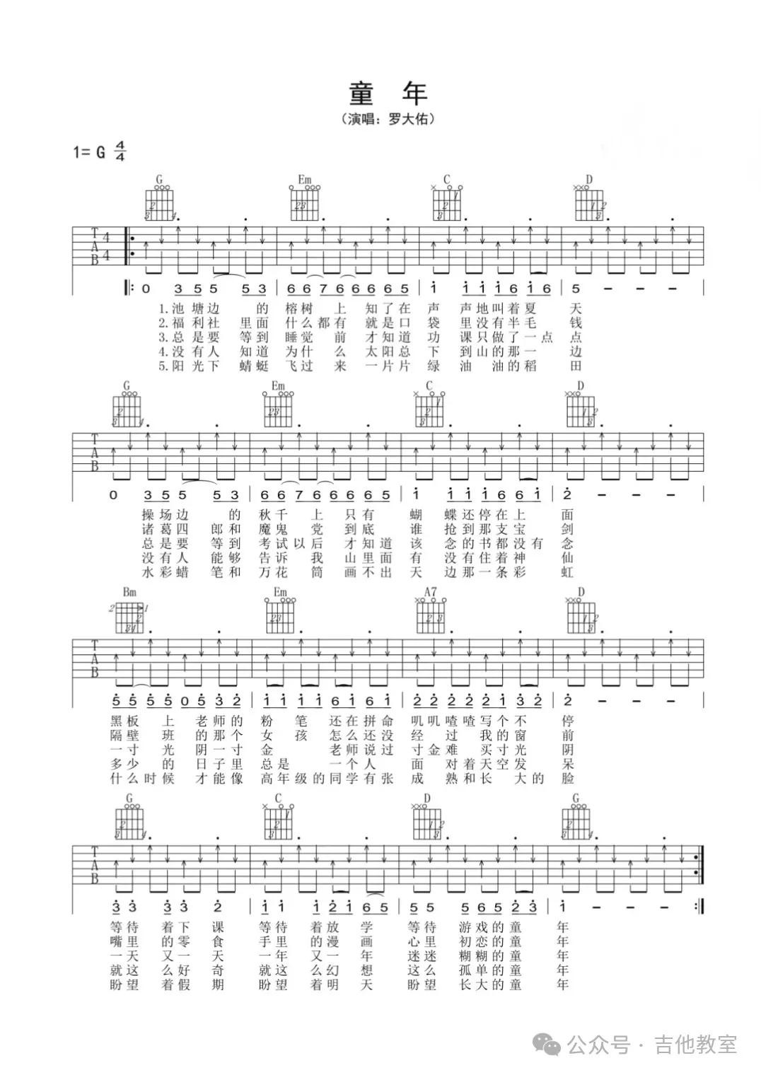 罗大佑的经典之作《童年》充满了怀旧与温情,旋律朗朗上口,和弦变化适中,非常适合初学者用来练习弹唱同步,感受音乐与歌词的完美结合。