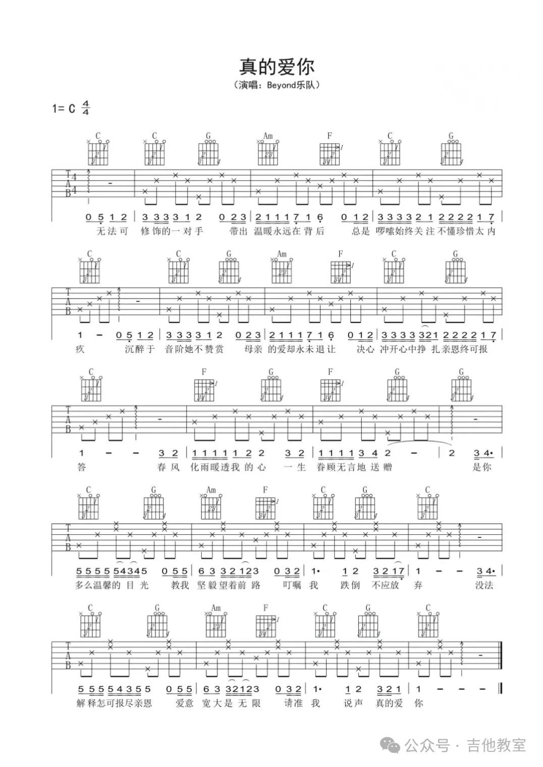 作为BEYOND的经典之作,《真的爱你》不仅旋律动听,还蕴含着深深的情感。这首歌曲的和弦变化丰富但不复杂,适合初学者逐步挑战,学习如何在演奏中注入情感。