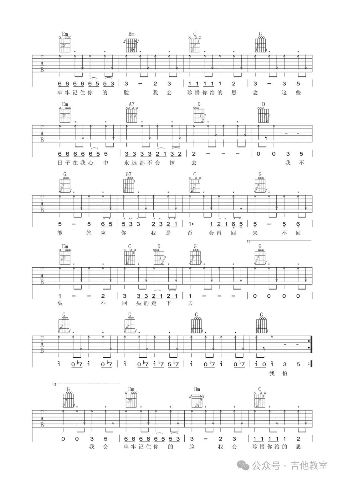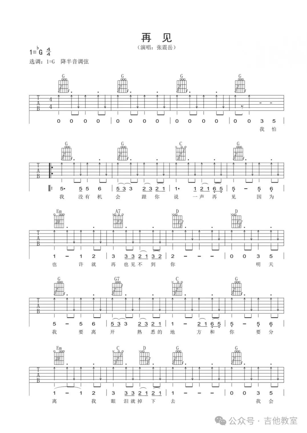 《再见》以其简洁有力的节奏和富有感染力的旋律成为许多人学吉他的首选。这首歌曲的和弦简单,易于记忆,适合初学者练习扫弦技巧和节奏感。