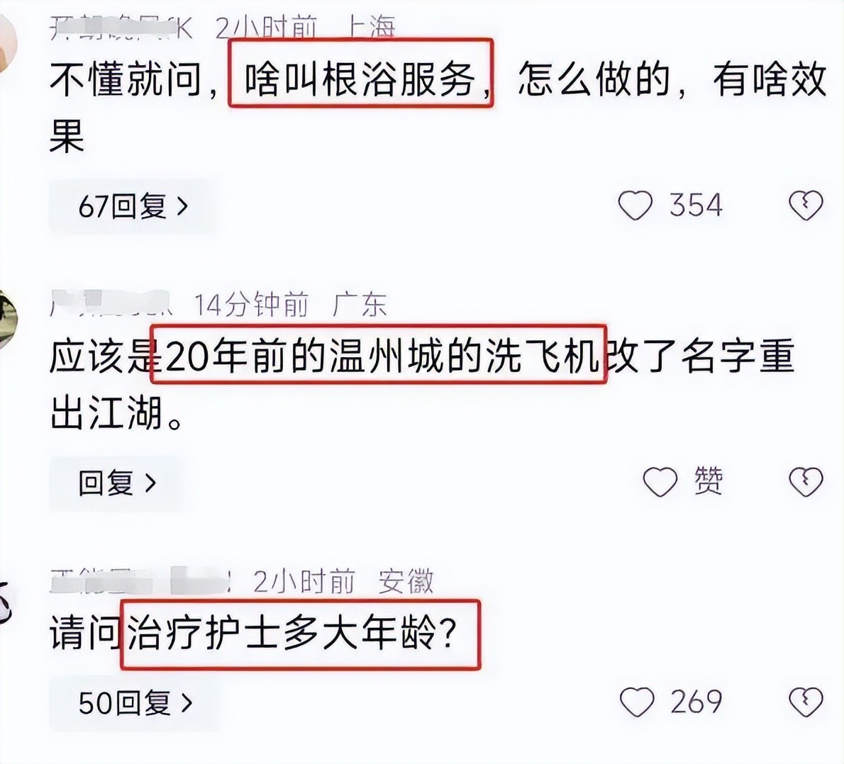根浴的服务方式也让人不禁皱眉。由女护士提供服务,难免会被怀疑与色情挂钩。这种将医疗与色情混为一谈的做法,如此不仅违背了医疗行业的职业道德,也损害了医院的形象和声誉。