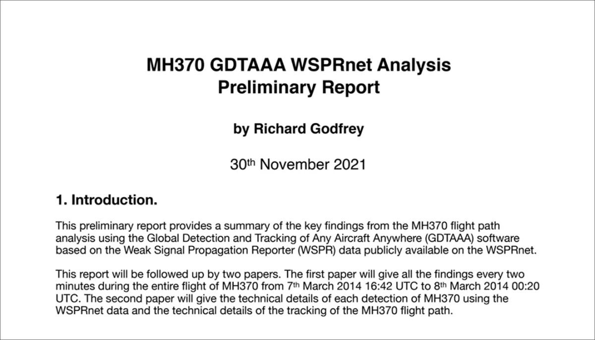 但11月30日,英国航空工程师戈弗雷,发布了一份最新的关于马航MH370去向研究报告。他称用了一项非常先进的实时跟踪技术,结合各种数据,现已发现了马航MH370的坠机地点。