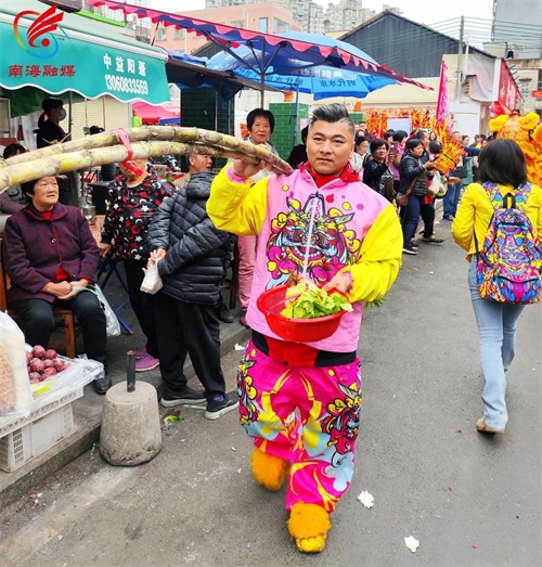 作为北村生菜会的独特风景,当然少不了“胜意蔗”“胜意饭”,领到“胜意蔗”“胜意饭”的街坊,脸上都笑开了花。“胜字当头,寓意来年财源滚滚,掂过碌蔗。”村民韦先生开心地说,自己还是小孩子的时候就跟着大人来逛生菜会,到长大了,每年也会带着家人来逛逛,“看醒狮表演,买风车,领‘胜意蔗’‘胜意饭’,还有吃生菜包,为新的一年祈福。”