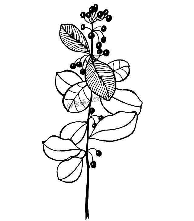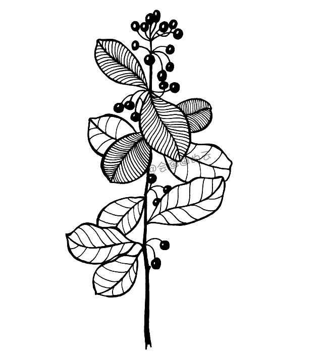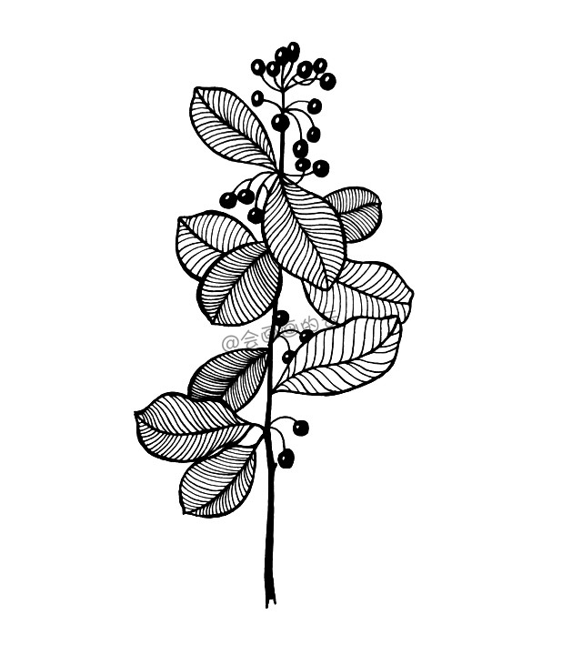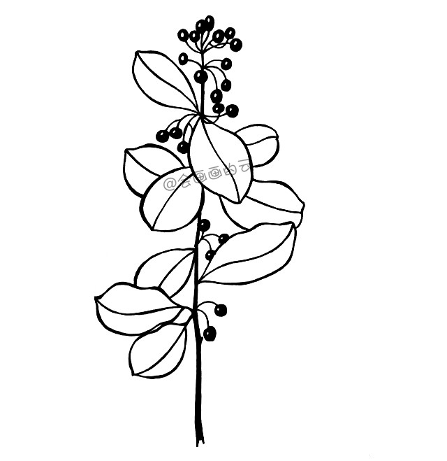 第三款的叶子加入了一些小小的果子,依然是先用0.5中性笔画出整体的轮廓,然后加粗枝干和叶子的边缘线条;