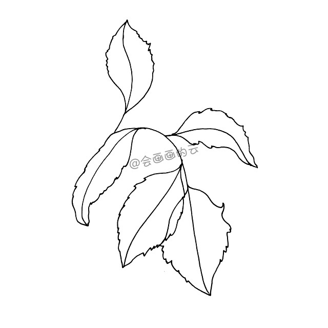 然后画叶子里面的线条,叶子的线条我们可以画得密集些,主线条的分布可以根据叶子边缘的锯齿来画;