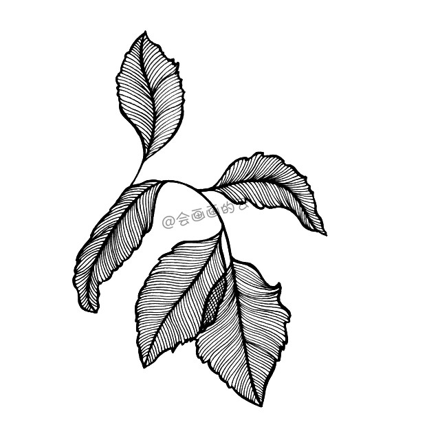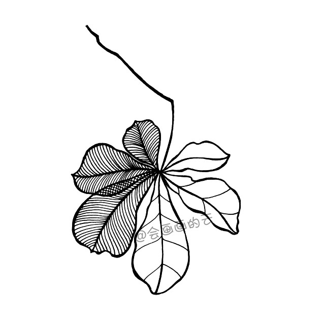 0.5号中性笔画出叶柄和叶脉,然后根据叶脉画出叶子的具体形状,注意线条的流畅度哦~