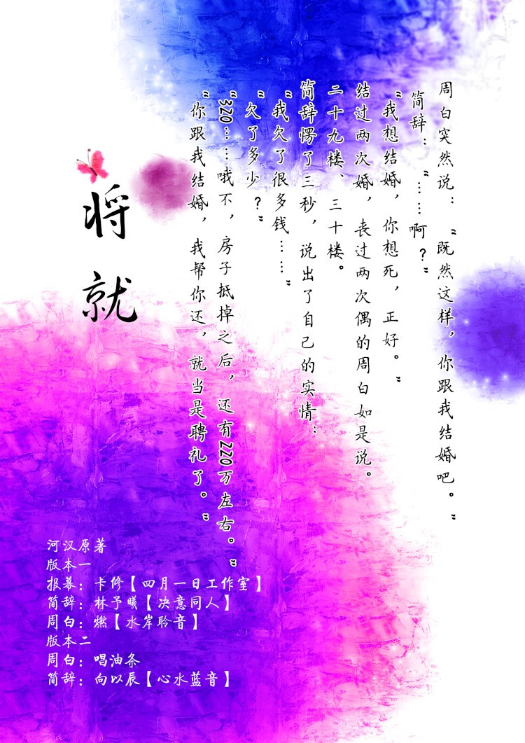 剧情略狗血,百分之八十靠cv撑起了场子。毫不客气的说,我就是个声控,听的苏苏的,听的心情好,听的还有点想笑~将就着听吧。