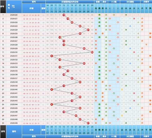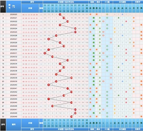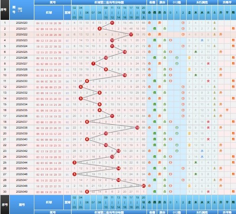 末位号码:上期末位奖号 25 位于 2字头区间,当前 3”字头号码在凤尾位置已连续 3 期未出现,打破了此前平均每 4 期出现 1 次的规律。从号码活跃度分析,