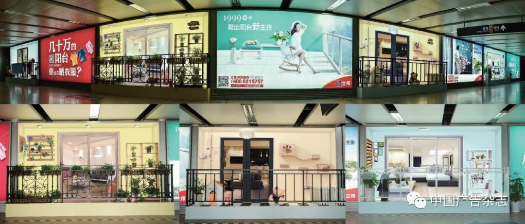 立邦将真实阳台搬进地铁通道,展现出阳台刷新改造前后带来的不同生活体验。场景内有晾晒衣服的旧阳台,有刷新后可供宠物撒欢、练习高尔夫球、摆放绿植花卉的新阳台,这些阳台通过连环画的形式有问有答地连接起来,同时还有线上线下联动——受众可通过扫码直接在官网、微信平台订购刷新服务。
