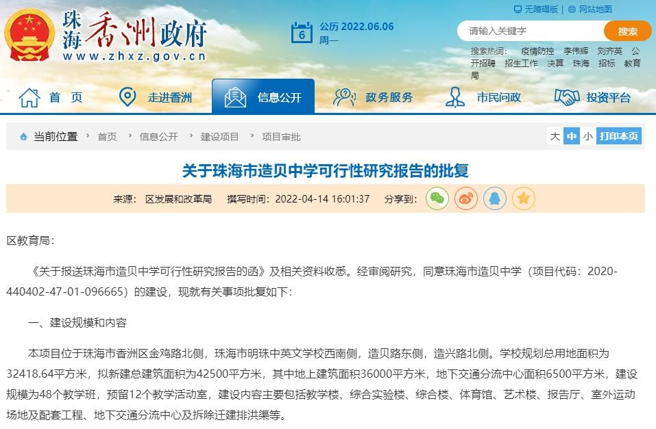 除造贝中学以外,一所全新的珠海高中也要来了。