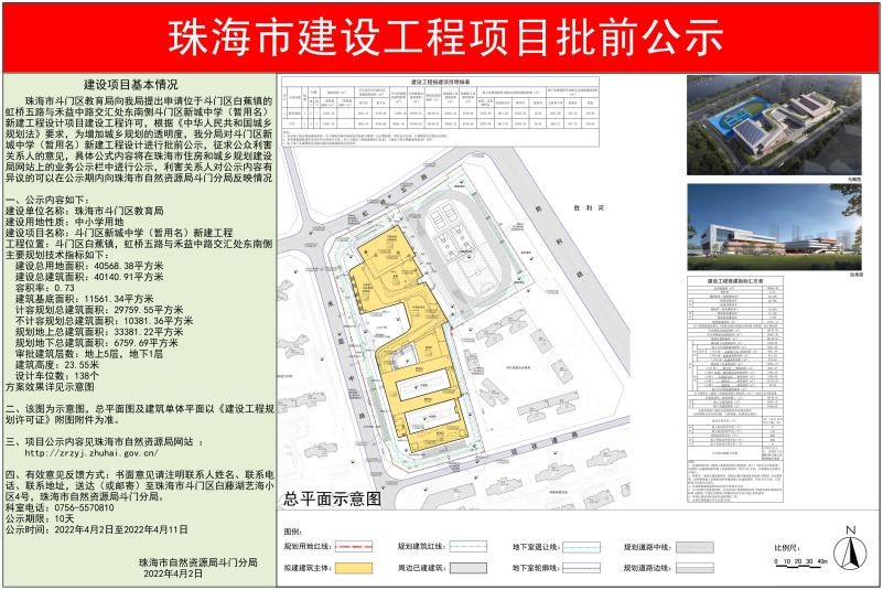 近日,有市民咨询斗门新城中学何时动工?何时招生?