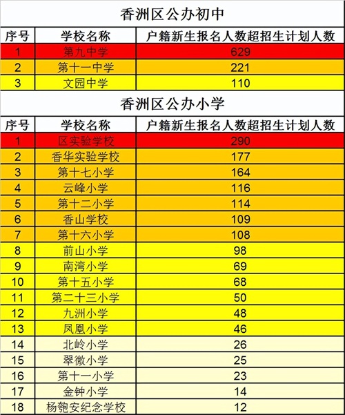 其中珠海九中,超出629人;珠海十一中超出221人;文园中学,超出110人。