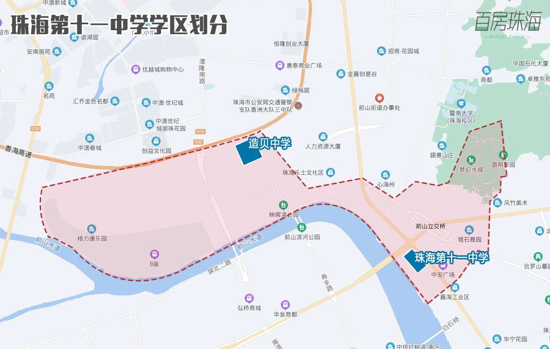 同样,新学校的到来,意味着学区户籍生将面临分流的可能。从位置来看,造贝中学位于珠海市第十一中学的学区范围内。