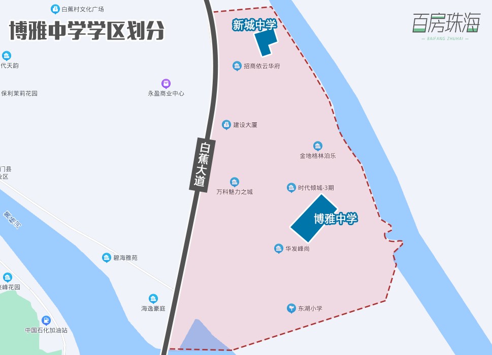 从范围来看,博雅中学学区范围涵盖丽湖名居、旭日华庭、华发峰尚、万科魅力之城、金地格林柏乐、新都商业中心、时代倾城一至四期(含天宸小区)、招商依云华府、恒隆御景花园等,住宅小区众多,几乎包含了整个白蕉新城。