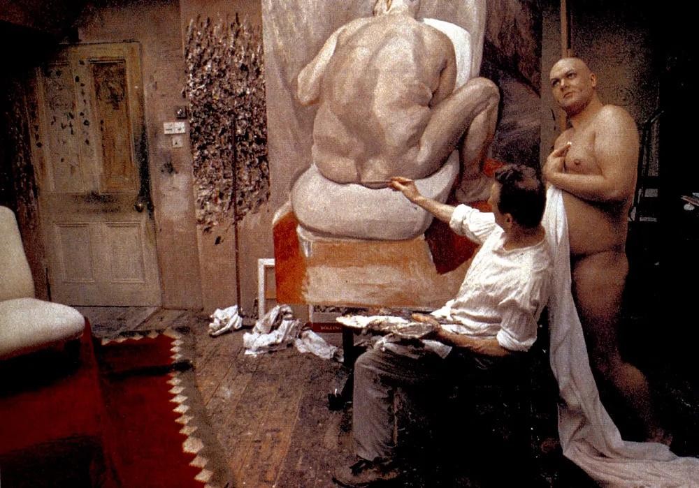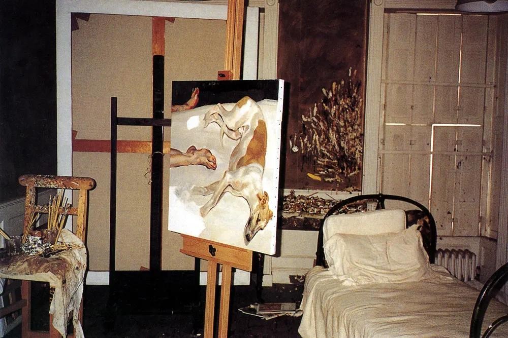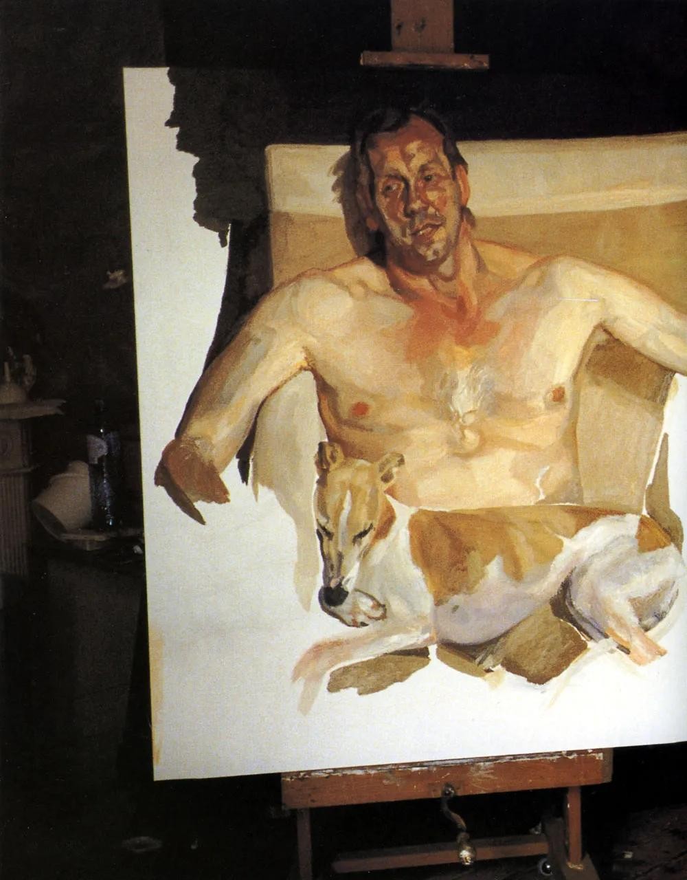 弗洛伊德每天作画的时间相当长,往往同时进行两到三张画作,分白天与夜晚两个时段进行,工作的时间从早上9点到下午3点,稍作休息之后,再从晚上7点画到半夜11点半。每天画10个半小时,一周7天,天天如此。