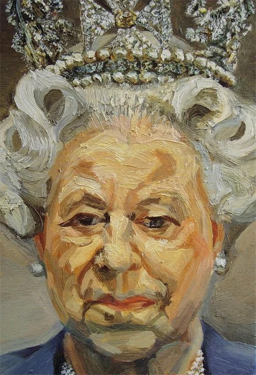 英国女王伊丽莎白也是弗洛伊德忠实的粉丝,不仅收藏他的大量画作,还请他画自己的肖像画。能为女王作画被大部分艺术家视为莫大的荣誉,但弗洛伊德却真实而倔强。经过6年谈判,他勉强答应,但坚持要女王到自己画室做模特,并要求至少72次。