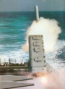 战斧导弹,射程为3000公里,发射方式采用,二节推进,固态燃料,为惯性引导系统。战略核导弹BGM-109A的战斗部为W-80弹头,靠触发引信爆炸杀伤区域半径为3公里。非核动力BGM-109C装有穿甲战斗部;BGM-109D为子母式战斗部,它含有近166枚BLU-97B小口径炸弹。战术导弹BGM-109B装有B-61爆破战斗部或WDU-25B战斗部。是一种全天候潜艇或者水面舰只发射的对地攻击巡航导弹。在发射之后,由导弹的固体燃料助推向前推进导弹,最后再由小型涡轮风扇发动机推进导弹,完成导弹的最后飞行。是一种远程、高存活的对地攻击武器系统,它具有极高的精确度。美海军水面舰只的纵深打击能力取决于"战斧"巡航导弹系统,它是经过实践检验了的、证明是执行应急任务的最佳武器选择。