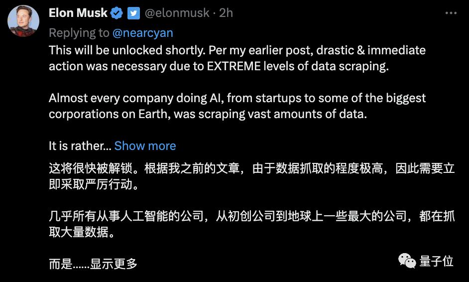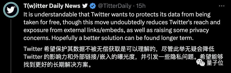 在另一条推文中,他还进一步解释说,这种抓取数据的行为已经影响了推特用户的体验。