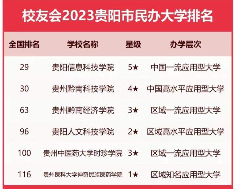 在贵阳市民办大学榜单中,贵阳信息科技学院居榜单首位,是贵阳市综合实力最强的一所民办大学。