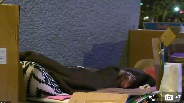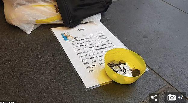 从图片可见,在不少无家可归者身前的纸牌上,他们写着: