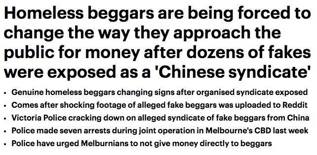 这是在上周继“中国假乞丐团伙”刷屏澳洲本地媒体后,
