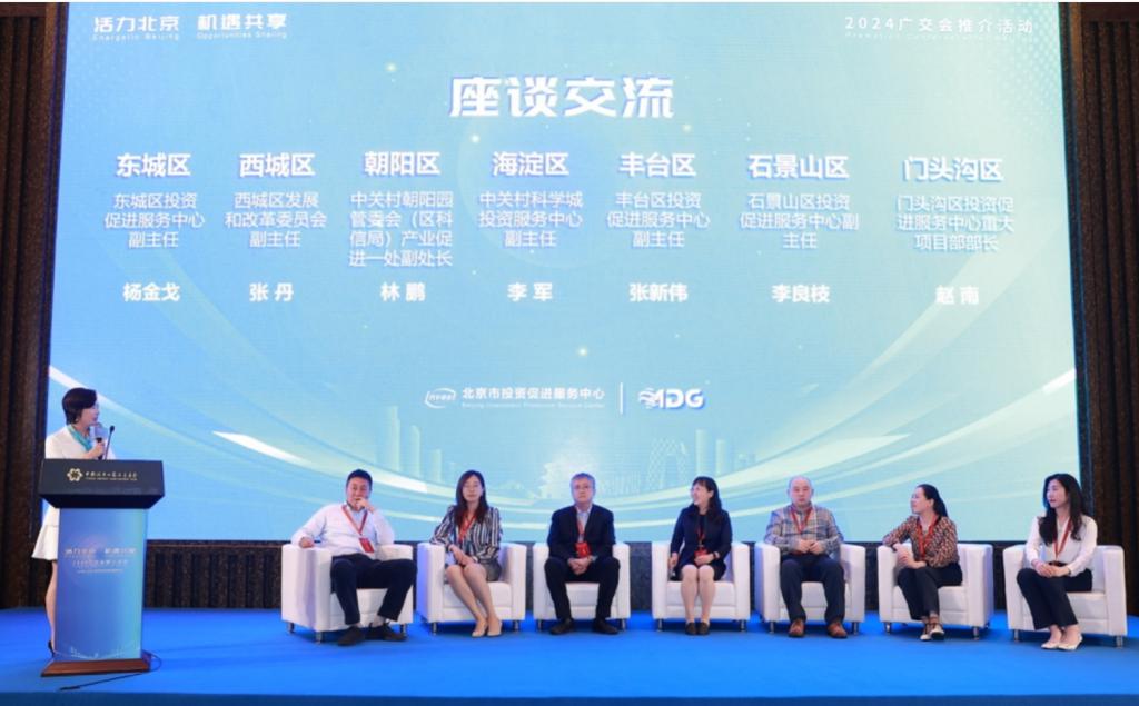 4 月 15 日,第 135 届中国进出口商品交易会开展之际,北京市投资促进服务中心以 " 活力北京,机遇共享 " 为主题,组织北京市 13 个区相关参团单位,在广州市举办招商引资推介活动。广交会优质展商和珠三角地区科技公司、龙头企业等 80 余家企业百余名代表参会,与北京市及相关区的负责人进行了深入洽谈交流。