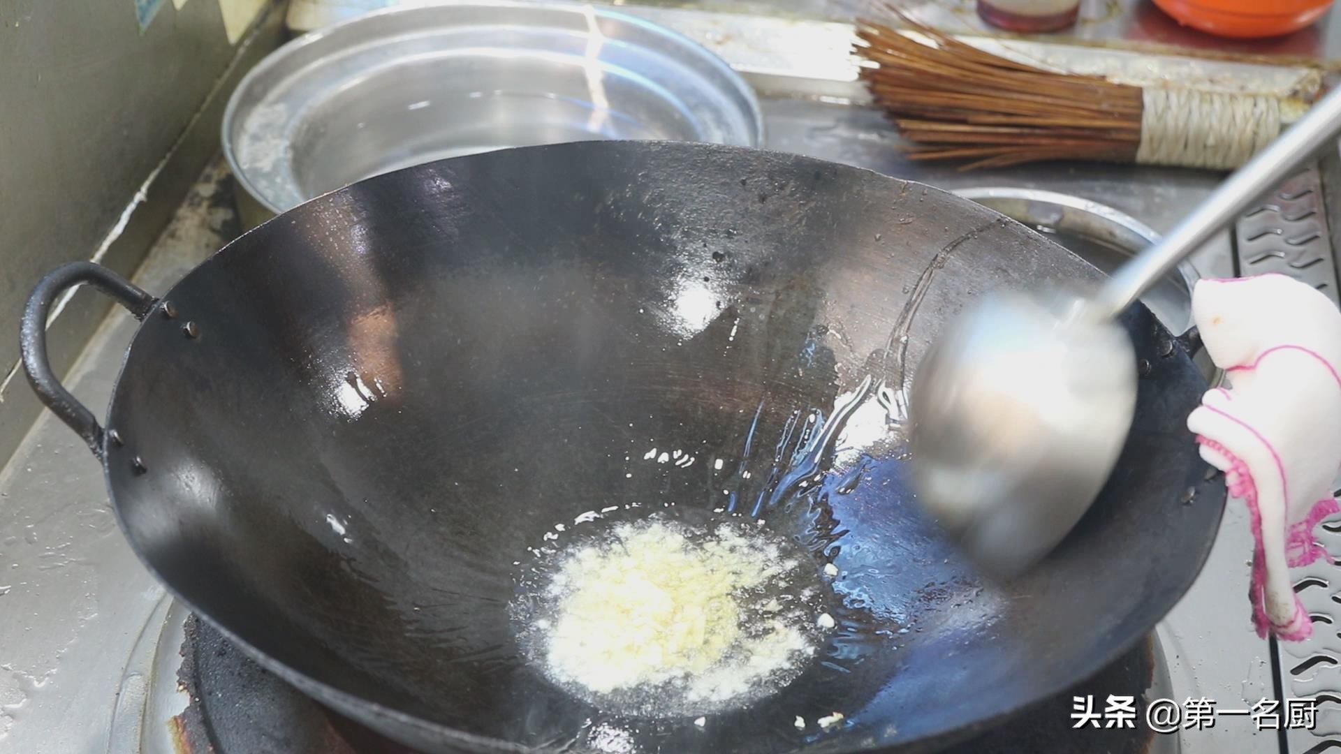 炒锅烧热添入半勺食用油,倒入蒜末翻炒几下。