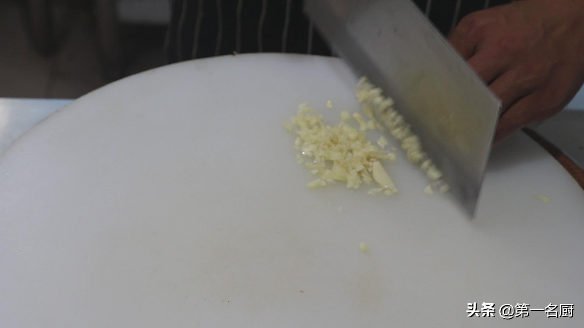 准备大蒜几粒,依次拍扁切成蒜末,放入小盆里面。