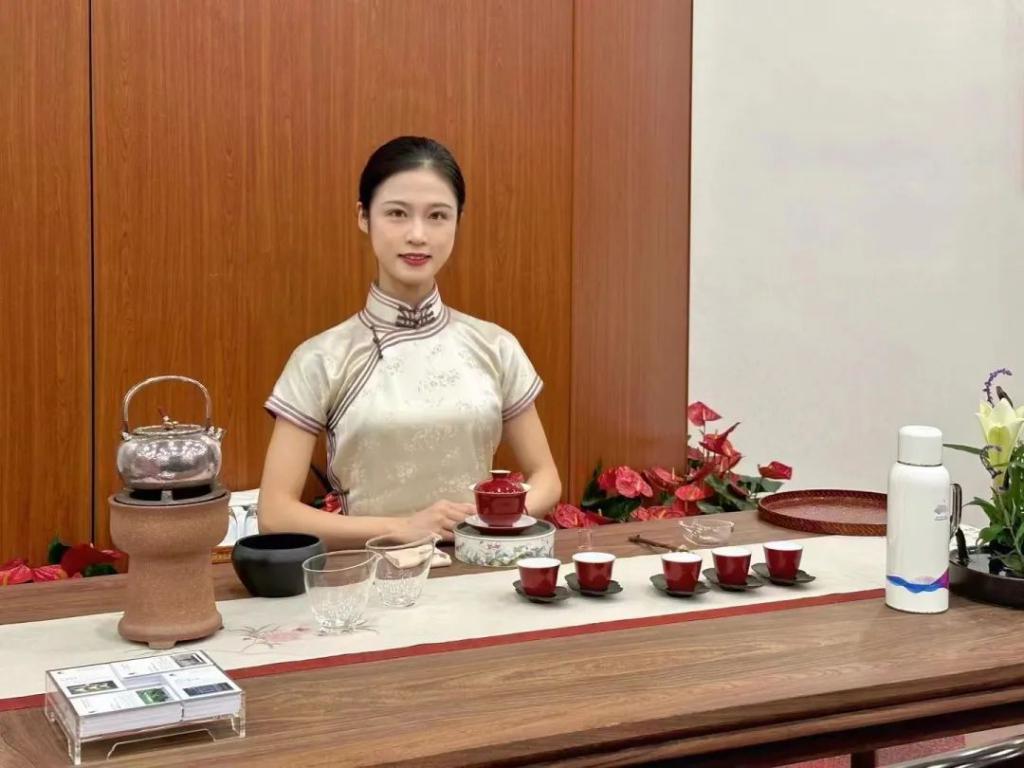以不变应万变,在前期她们就茶艺技能、礼仪仪态等方面已经进行了专业系统的培训,考虑到对接的是外宾,因此也特地准备茶品、茶文化与茶科学相关的英文解说。对于接待任务,余月儿胸有成竹。