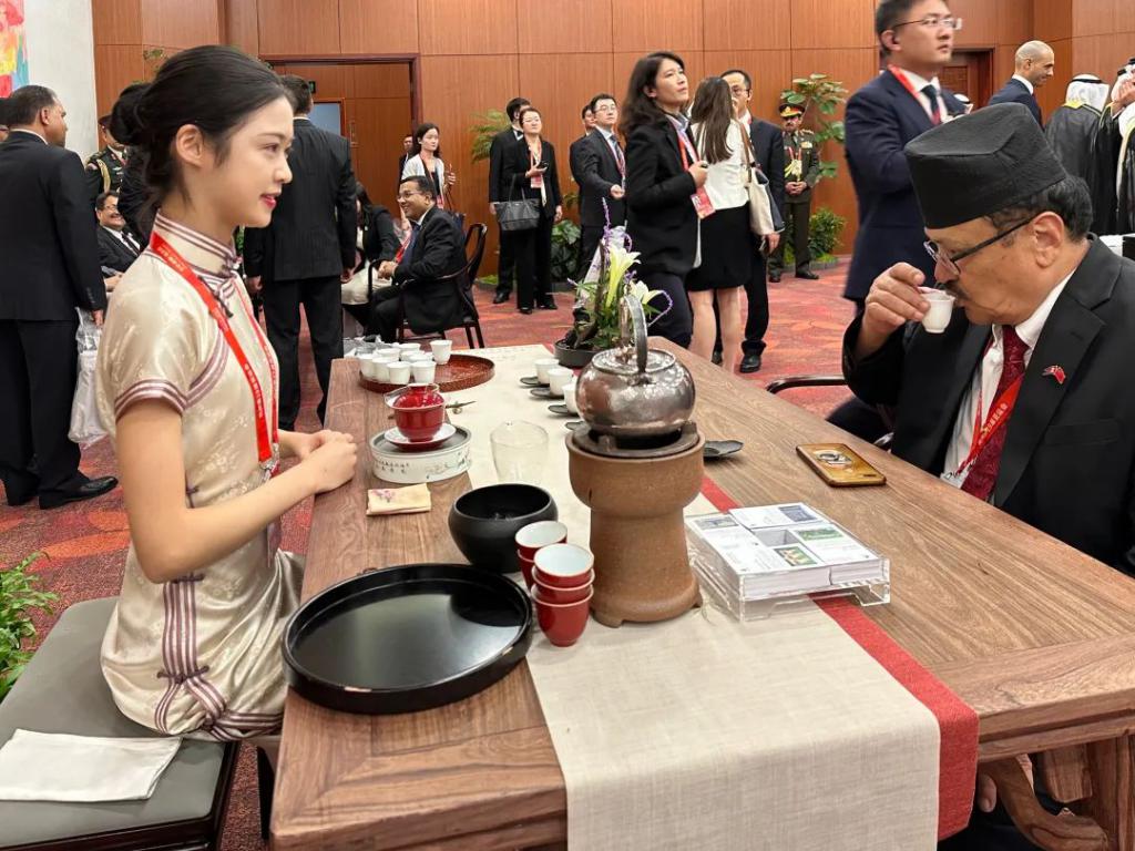 " 我们接待厅有盖碗茶艺和点茶两个部分,大家看到茶艺后都主动地过来品饮并提问了解。叙利亚总统夫妇向我们提问了西湖龙井的历史,当听到我说西湖龙井有 1200 多年的历史,在唐代陆羽所写的《茶经》中就有所记载时,他们表达了惊讶,并说中国文化源远流长,很有魅力。" 余月儿兴奋地回忆," 柬埔寨国王西哈莫尼还问了‘茶杯下面的小铁盘是什么?该用什么手去拿茶杯’,在品饮完红茶九曲红梅后连连赞叹‘ it ’ s very good ’。马来西亚国会下议院议长佐哈里与夫人第一次喝到‘不加糖不加柠檬的茶’,连连称赞‘中国茶能有这么好的口感,甚至能感受到花香,真的很诧异’。"