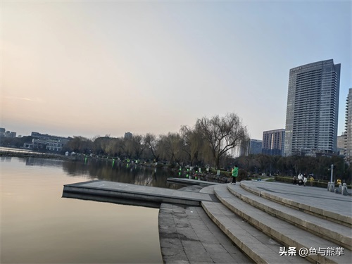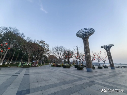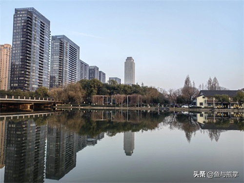 从东西南北各岸观望,湖中和岸上皆有拱桥和直桥,兼有亭台楼阁、曲径悠悠,非常有趣;更远处一些,则是高楼大厦,据说全柯桥最豪华的住宅楼基本都聚集在这里。
