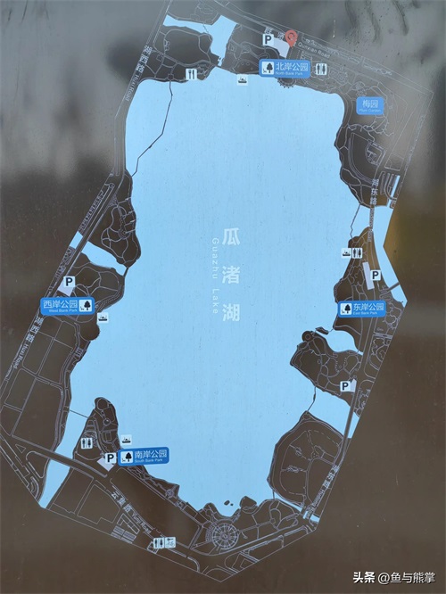 瓜渚湖东南西北四个岸上各有一个公园,分别叫东岸公园、西岸公园、南岸公园和北岸公园。