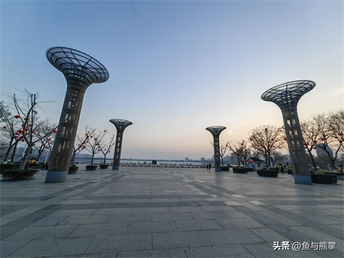 夏天赏樱花,要到东岸公园。园子达10.15万平方米,植有千余株樱花树,河磡、园路、亭、廊、置石等自不必说。