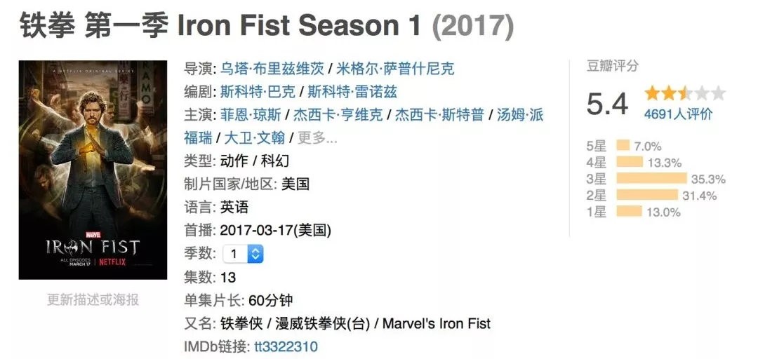 事实上,《上气》并不是漫威第一部以中国元素为主的影视化作品。2017年,漫威电视曾和ABC电视台联合出品了电视剧《铁拳》,在Netflix上播出。