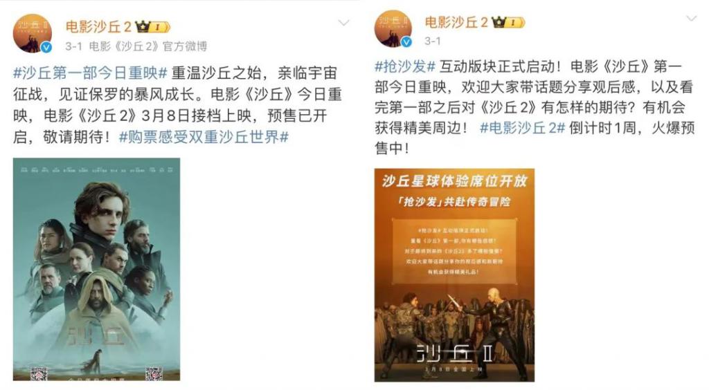 近年重映还多了一个为新上映的系列续作宣传的目的。比如今年《沙丘 2》上映前,《沙丘》进行了为期 10 天的限定重映;《白蛇:缘起》也在《白蛇:浮生》上映前作了重映。在此之前,《阿凡达》《还是觉得你最好》都做过为系列续作预热的尝试。