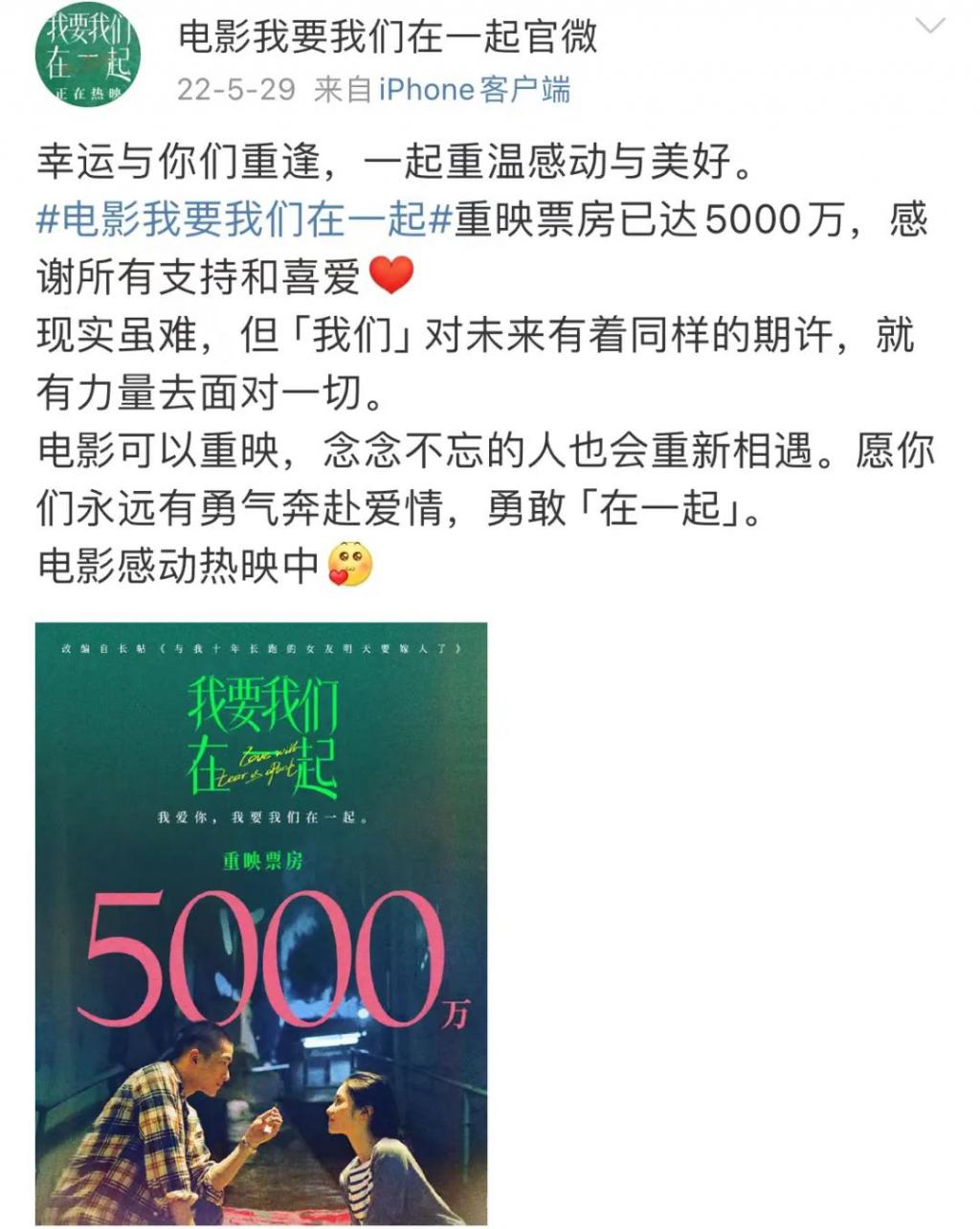 (图源:微博 @电影我要我们在一起官微)