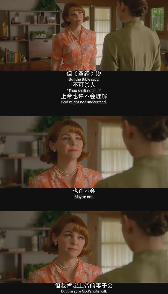 仇恨敌视之外,女性之间的关系,我们本可以有更丰富的叙述和呈现,就像贝斯所说:那是上帝不会理解,但上帝的妻子会理解的关系…