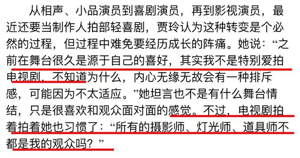 贾玲则是遗憾没能科班出身,所以搞喜剧怎么也不得劲,这又得是委屈过的人会懂的心理障碍。