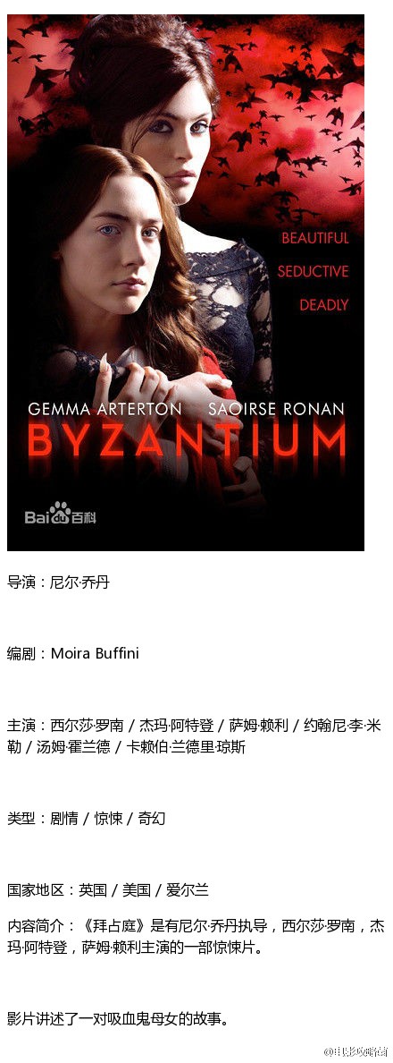 说到吸血鬼电影很多人可以最先想到的是《暮光之城》,其实经典的吸血鬼电影还有很多,下面是经典吸血鬼电影排行榜前几名。1、夜访吸血鬼 2、惊情四百年 3、范海辛 4、拜占庭 5、吸血鬼生活 6、暮光之城系列 7、刀锋战士三部曲 8、黑夜传说系列 9、嗜血破晓。