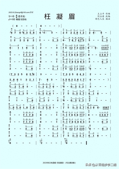 《枉凝眉》(王立平作曲、何占豪改编)二胡简谱(图片另存,可直接打印)