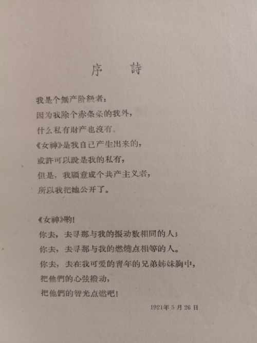 《女神》是五四新文学运动中有独创性的、影响很大的一部诗集,初版于1921年8月。这部诗集,充满了大胆的反抗精神和对于祖国前途新生的渴望;作者以火一般的热情,唱出了反帝反封建的洪亮歌声,显示了那个时代的战斗精神和英勇姿态,表现了企图创造“未来”的信心与力量。