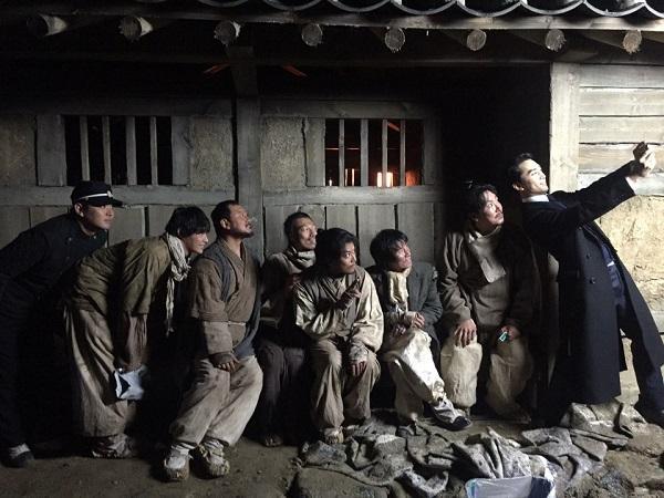 1月18日,演员宋承宪在微博发布一组照片,并附文道:“Kimchi~~~!” 照片中,宋承宪正在电影《队长金昌洙》拍摄现场,一身西装革履。他背后则坐着赵震雄、郑满植等其他演员,都是穷苦人扮相,衣衫褴褛。所有人都一齐看向宋承宪的手机镜头,宋承宪面带调皮的微笑,仿佛在说:“这里我最帅。”对此,粉丝们纷纷留言道:“ 最帅的监狱长”、“最坏的官老爷”、“哈哈!这个自拍太撩人”等。 另外,电影《队长金昌洙》于去年11月开机,将于今年内上映。(责编:邵天翔)