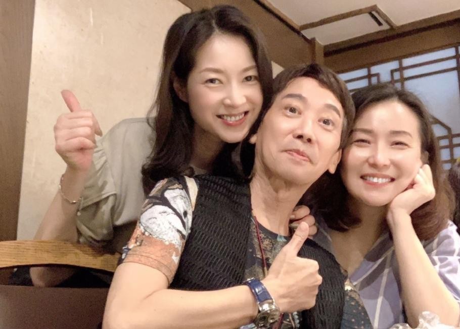 张达明与俩美女聚会,脸贴脸合影表现亲密,曾因病主动跟妻子离婚