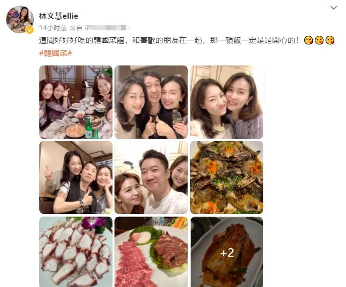 9月4日,电影监制林文慧在个人社交账号上晒出一组合影,并配文称,这间菜馆很好吃,跟喜欢的朋友在一起,那顿饭一定是开心的。