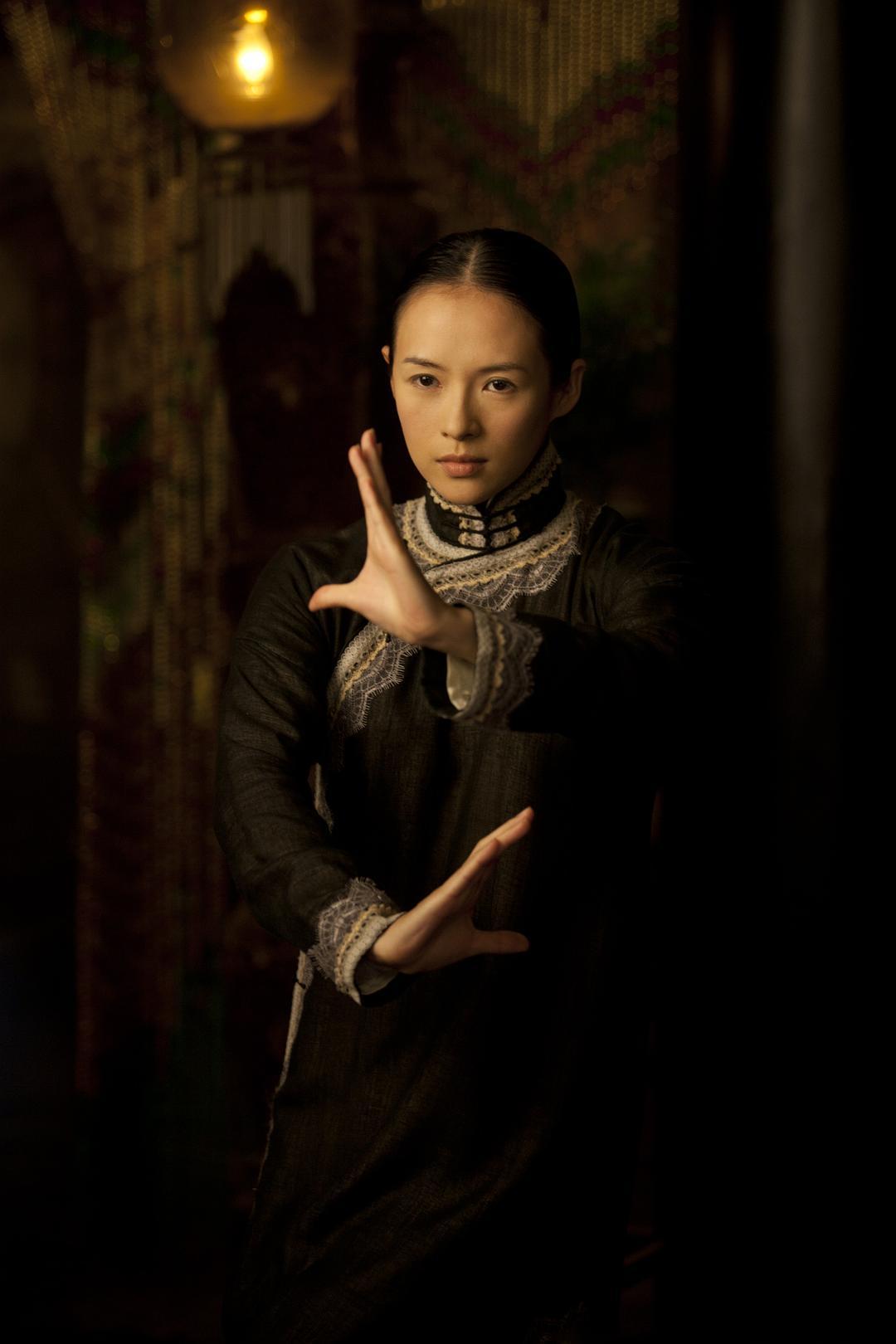 因为章子怡在影片中饰演的宫二是习武之人,经常要动些拳脚功夫,所以她的旗袍比其他人的都要宽松一些,电影中宋慧乔饰演的叶问夫人的旗袍就是比较贴身的。